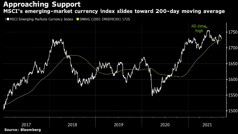 По словам Грира, Fidelity International сокращает свои инвестиции в развивающиеся валюты, добавив, что спредов по большинству долларовых долговых обязательств развивающихся рынков недостаточно, чтобы компенсировать риски. Акции ЕМ пострадали больше всего, снизившись почти на 4% в этом месяце. Долларовый долг заемщиков из развивающихся стран упал в цене на 0,4%. Индекс развивающихся валют MSCI Inc. снизился на 1,7% с исторического максимума, достигнутого в июне.