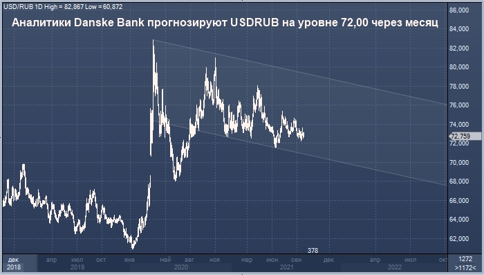 Аналитики Danske Bank прогнозируют курс доллара США к рублю на уровне 72,00 через один месяц, 72,00 через три месяца, 71,00 через шесть месяцев и 70,00 через двенадцать месяцев. Они утверждают, что риски для российского рубля сместились с геополитики в сторону укрепления доллара США.