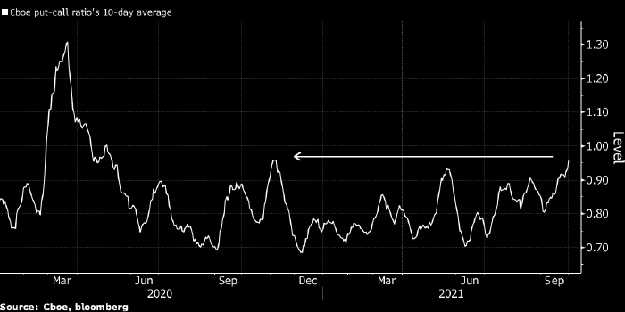 Соотношение пут-колл на CBOE. Источник: Bloomberg