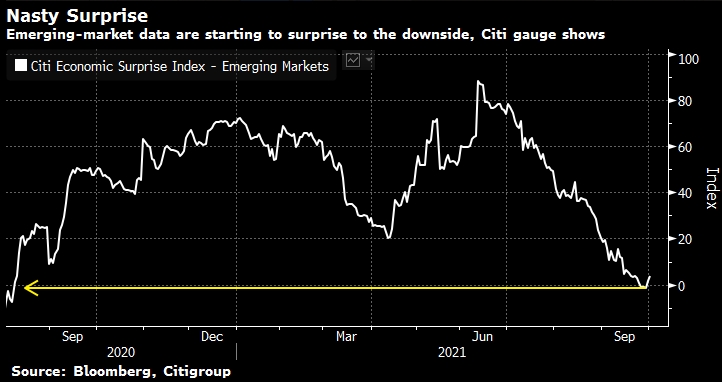 Медвежий фон вряд ли мог сложиться в еще более худшее время для инвесторов из развивающихся стран, которые и так пострадали от последствий долгового кризиса China Evergrande Group. и ужесточения регулирования в КНР в отношении ключевых секторов, включая высокие технологии. Премия по доходности суверенных облигаций из развивающихся стран по сравнению с ценными бумагами США уже тестировала самый высокий уровень с марта, в то время как эталонный индекс акций MSCI Inc. для данного класса активов только что продемонстрировал самое большое квартальное снижение с начала пандемии.