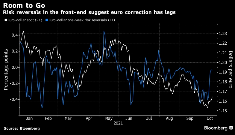Опционы предполагают, что евро поднимется выше ряда уровней сопротивления, с которыми он сталкивается на спотовом рынке. Недельный разворот риска находится почти на паритетных уровнях, и, учитывая, что сделки с опционами влияли на настроения в этом году, единая валюта может продолжить свой рост.