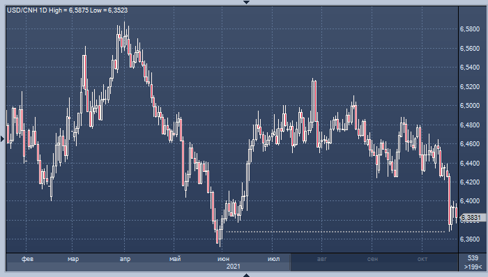 График курса доллара к юаню интервалами 1 день