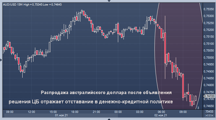 Это означает, что РБА будет отставать от других крупных центральных банков, сказала Евгения Викторино, руководитель азиатского подразделения по анализу стратегии в Сингапуре. Распродажа австралийского доллара после объявления решения отражает отставание в денежно-кредитной политике.