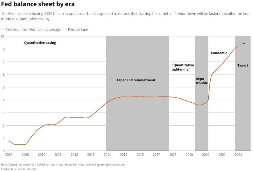 График баланса ФРС по эпохам. Reuters