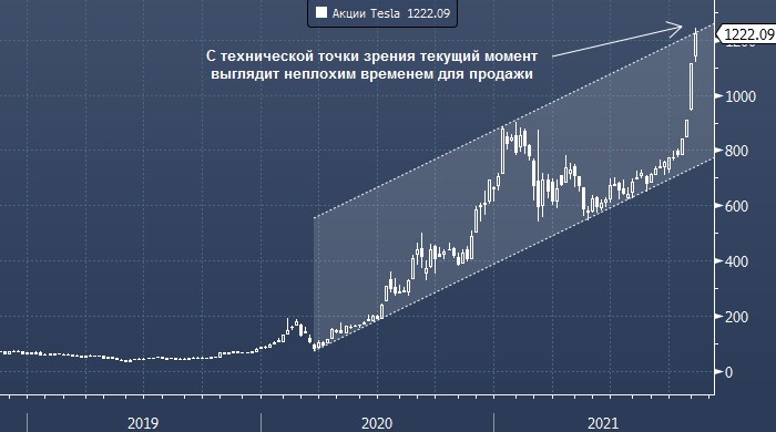 График акций Tesla интервалами 1 неделя