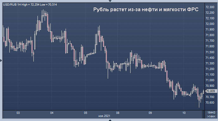 Рубль укрепляется четвертый день подряд, так как нефть марки Brent торгуется выше 85 долларов за баррель. Доходность эталонных государственных облигаций падала всю неделю в связи с возобновлением аукционов в среду. Рубль + 0,2% до 70,61, самая продолжительная полоса прироста за пять недель.