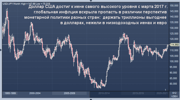 График доллар/иены интервалами в 1 неделю