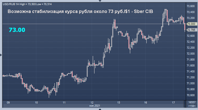 "Рубль во вторник подешевел более чем на 1%, до 73,5 руб./$1, из-за геополитической напряжённости и глобального укрепления американской валюты после достаточно жёстких комментариев представителей ФРС. Если геополитическая ситуация не ухудшится, курс рубля может стабилизироваться около 73 руб./$1", - прогнозируют эксперты Sber CIB.