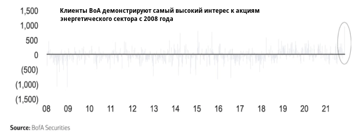 «Мы видим больше возможностей для ралли и отмечаем, что энергетика подпадает под несколько ключевых категорий (доходность с защитой от инфляции, средство для улучшения ESG)», — отметила Джилл Кэри Холл, глава американского подразделения по стратегиям малого и среднего бизнеса в BofA.