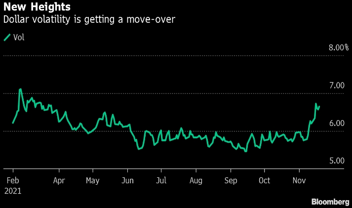Волатильность на валютных рынках вернулась с новой силой, вызванная тем, что Европа снова и снова сталкивается лицом к лицу с ограничениями. Составной трехмесячный индекс волатильности доллара подскочил до уровней, которые в последний раз наблюдались в марте, когда рынки были потрясены ростом доходности казначейских облигаций. На текущих уровнях трейдеры готовятся к среднему дневному движению индекса доллара на 0,42% в течение следующих трех месяцев.