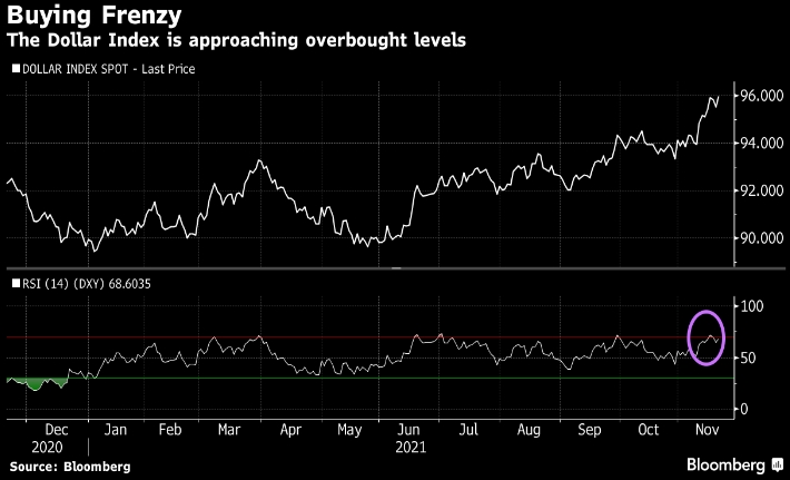Для сведения, на следующей неделе курс евро / доллар может снизиться до 1,1131, хотя темпы снижения сейчас увеличиваются на фоне объявления Австрией общенациональной блокировки и отказа Германии исключить подобную перспективу. Это, конечно, означает, что доллар, который уже рос, получает дополнительный попутный ветер. Меру того, насколько интенсивно люди бегут в доллар, можно увидеть на графиках, где валюта находится в районе наибольшей перекупленности за последнее время.