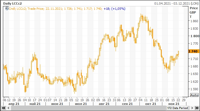 В Лондоне мартовский фьючерс на какао подорожало на 1% до 1740 фунтов за тонну.
