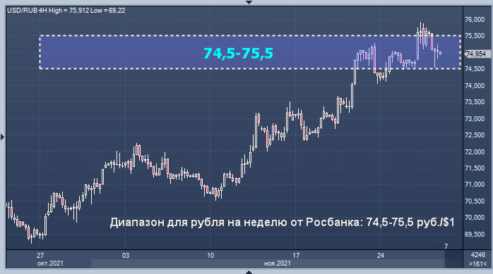 "Вопреки завершению налогового периода, навес предложения валюты от экспортеров может дать о себе знать в связи с предстоящими выплатами промежуточных дивидендов. Мы полагаем, волатильность рубля останется высокой - для пары доллар-рубль базовым сценарием на неделю остается интервал 74,5-75,5 руб./$1, а для пары евро-рубль - 84-85 руб./EUR", - прогнозируют эксперты Росбанка.