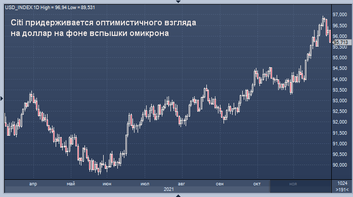 Citi заявляет, что нынешняя вспышка омикрона укрепляет и поддерживает его оптимистичный взгляд на доллар. Если беспокойство по поводу этого варианта усилится, курс американской валюты должен поддерживаться спросом на активы-убежища, особенно по отношению к таким валютам, как фунт, написали стратеги, в том числе Эбрахим Рахбари, глобальный руководитель валютной стратегии G-10 в Нью-Йорке, в аналитической статье.