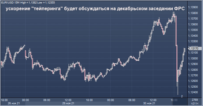Глава ФРС сказал, что слово «преходящая» больше не является корректным определением для текущей высокой инфляции. Он отметил, что целесообразно рассмотреть возможность завершения сворачивания покупок активов на несколько месяцев раньше ожиданий, поскольку инфляция кажется более устойчивой, чем прогнозировалось. Ранее Федрезерв уведомил рынки о планах завершить программу покупки активов в середине 2022 г.