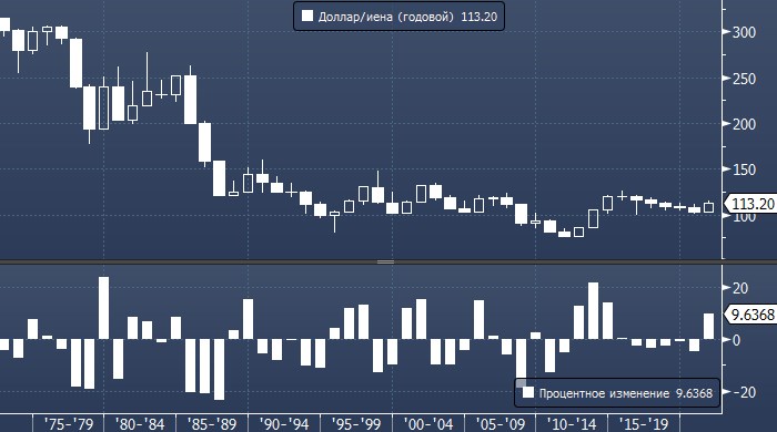 С начала 2021 года курс доллара к иене вырос примерно на 9,5%, что является рекордным значением с 2014 года.