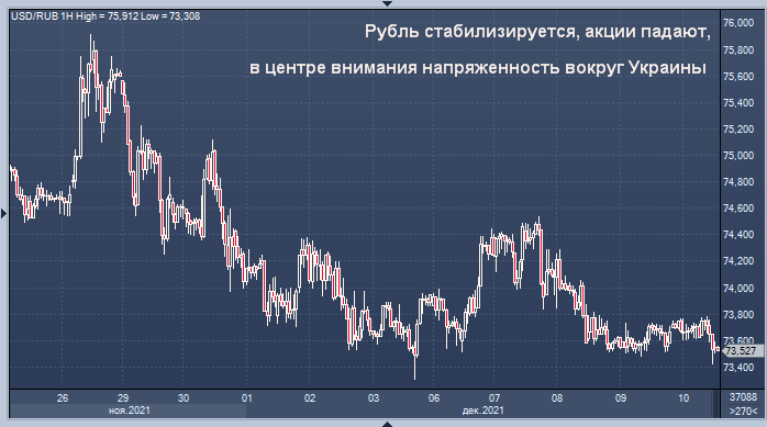 Рубль снизился с многомесячного пика в 69,21 до доллара, достигнутого в конце октября, оказавшись под давлением продавцов из-за опасений по поводу возможного российского военного вмешательства в Украину, что Москва неоднократно отвергала.