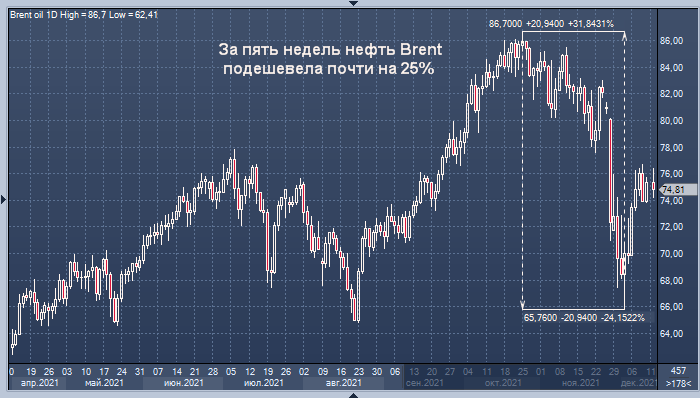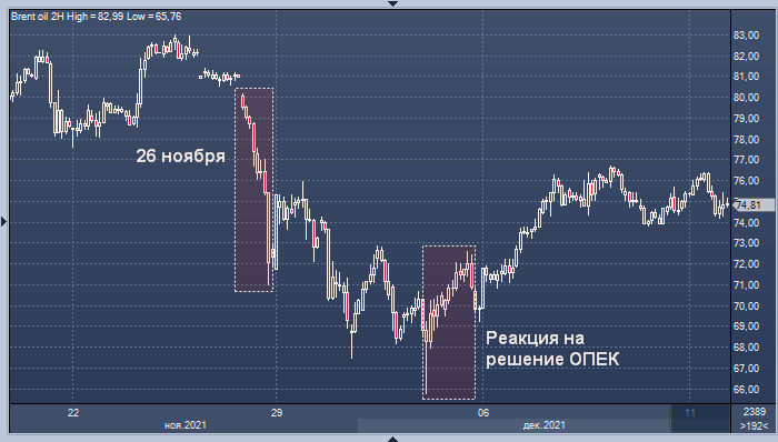 Днем 2 декабря снижение котировок нефти Brent c максимумов 25 октября достигало почти 25%, однако после объявления решения ОПЕК+ рынок развернулся вверх.