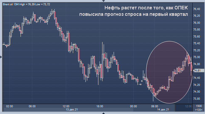 Нефть выросла, поскольку сохраняющаяся неопределенность относительно воздействия варианта вируса омикрон на спрос была компенсирована увеличением прогноза спроса ОПЕК на следующий квартал. Нефть марки Brent подорожала до 75 долларов за баррель после падения на 1% в понедельник. Организация стран-экспортеров нефти повысила оценки потребления нефти в первом квартале на 1,1 миллиона баррелей в день в ежемесячном отчете исследовательского отдела группы, но сообщила, что по-прежнему ожидает профицит предложения.