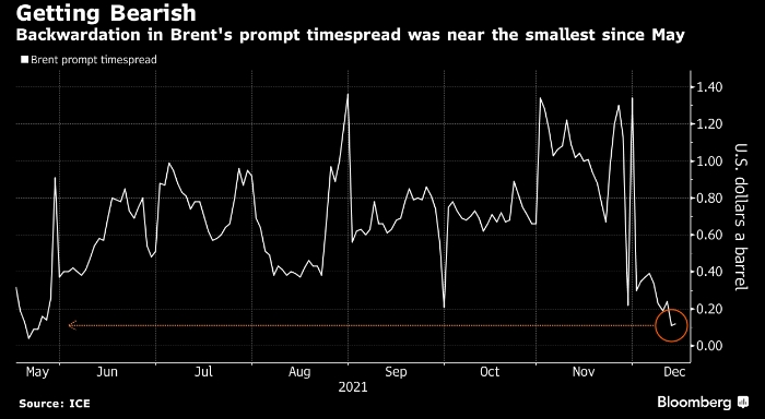 Однако кривая фьючерсов указывает на ухудшение прогноза цен. Марка Brent постепенно приближается к медвежьей структуре контанго, где краткосрочные контракты дешевле, чем более поздние. Во вторник спред составлял 14 центов за баррель по сравнению с 1,04 доллара за баррель месяцем ранее.