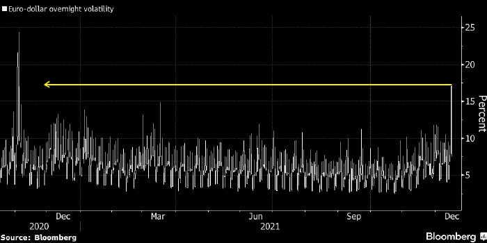 Волатильность однодневных опционов на евро/доллар. Источник: Bloomberg
