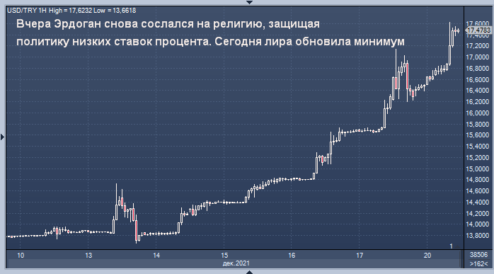Это второй раз за месяц, когда Эрдоган ссылается на религию для оправдания нынешней денежно-кредитной политики, которая соответствует его требованиям о снижении стоимости заимствований для ускорения экономического роста. По его словам, крах лиры является результатом экономической осады, но Турция не откажется от своей новой экономической политики.
