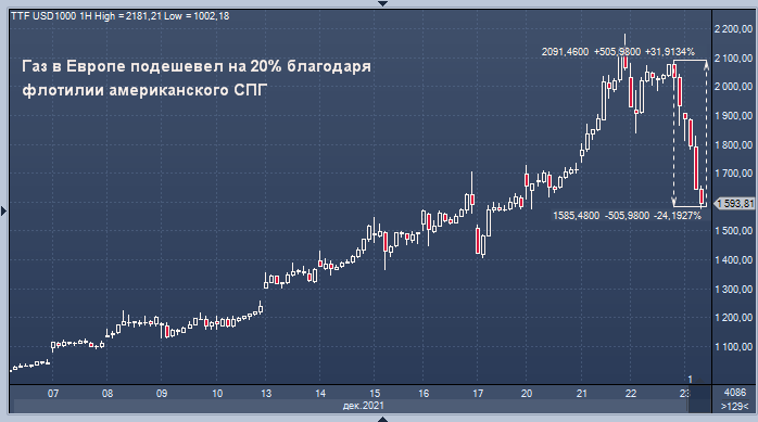 Цена газа в Европе поднималась до нового рекорда около $2200