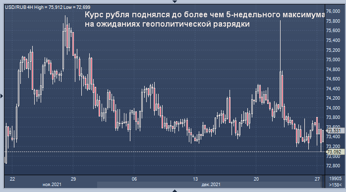 Рубль находится под усиленным геополитическим давлением с октября, поскольку западные страны выразили озабоченность по поводу наращивания военной мощи России вблизи ее соседней Украины. Москва заявила, что может перемещать свою армию по своей территории так, как сочтет необходимым.