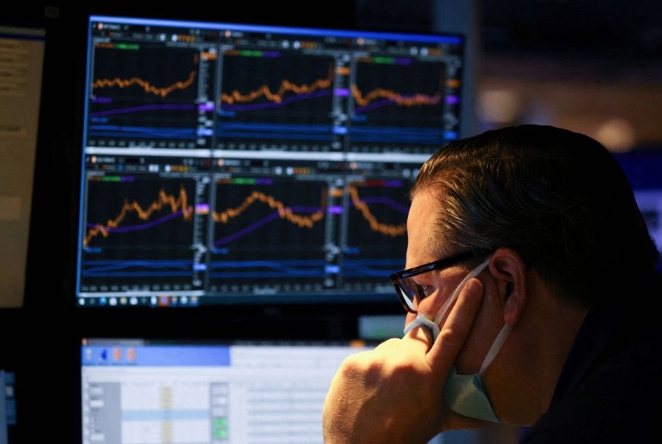 Трейдер работает в торговой площадке в последний день торгов перед Рождеством на Нью-Йоркской фондовой бирже (NYSE) на Манхэттене, Нью-Йорк, США, 23 декабря 2021 года. REUTERS / Andrew Kelly