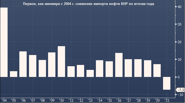Источник: Bloomberg. Первое годовое снижение импорта нефти Китаем с 2004 года.