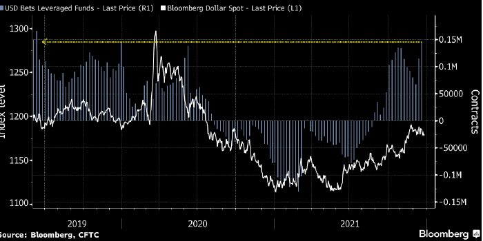 На неделе до 21 декабря крупные спекулянты, вроде хедж-фондов, резко увеличили ставки на рост доллара против основных валют, доведя их почти до 150 тыс. фьючерсных и опционных контрактов, что является максимальным значением с июня 2019 года. Таковы последние данные американской комиссии по торговле товарными фьючерсами (CFTC).