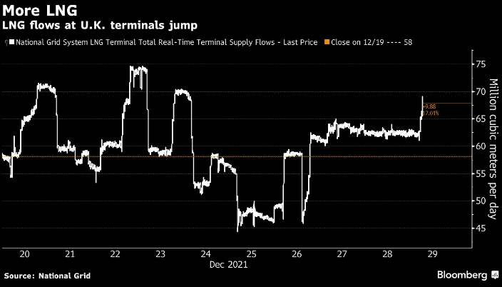 По данным National Grid, приток сжиженного природного газа на терминалы Isle of Grain и Milford Haven со времен Рождества вырос более чем на 20%. Потоки в другие порты Европы также увеличатся, при этом количество грузов из США, направляющихся в европейские порты, за выходные подскочит на одну треть.