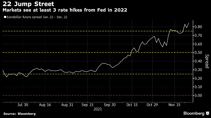 Цены на фьючерсы на евродоллары предполагают, что трейдеры ожидают как минимум трех повышений ставок ФРС в следующем году.