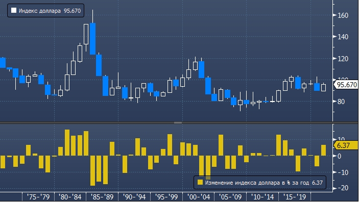 График индекса доллара интервалами в 1 год