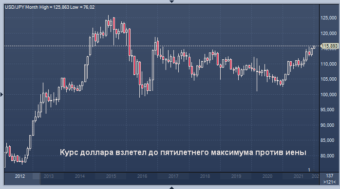 «Рынок оценивает более агрессивный сценарий повышения ставок в США - или, по крайней мере, риск такого повышения - в 2022 году, и это определенно остается ключевой поддержкой для доллара», - сказал Шиничиро Кадота, старший валютный стратег Barclays в Токио.