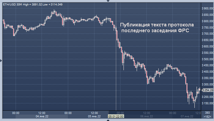 За последние три дня криптовалюты заметно подешевели: все началось в среду вечером, когда за несколько часов многие из них рухнули на 10% с лишним. Поводом для обвала послужила публикации протокола последнего заседания ФРС, которое состоялось 15 декабря 2021 года.