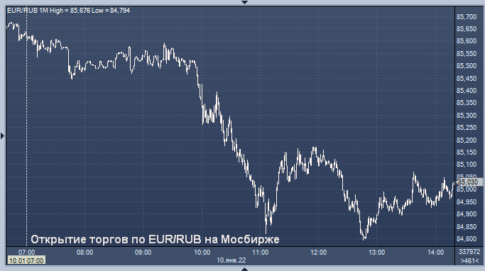 Таким образом, по официальному курсу ЦБ доллар вырос к рублю на 84 копейки, а евро вырос к рублю на 1 рубль 7 копеек по сравнению с официальным курсом 31 декабря 2021 года. Объем торгов на Московской бирже к 14:15 мск понедельника составил 827,8464 млрд рублей или 11 143,0536 млн долларов. Рубль сегодня растет благодаря стаблизации ситуации в Казахстане и возвращению экспортеров с новогодних праздников.