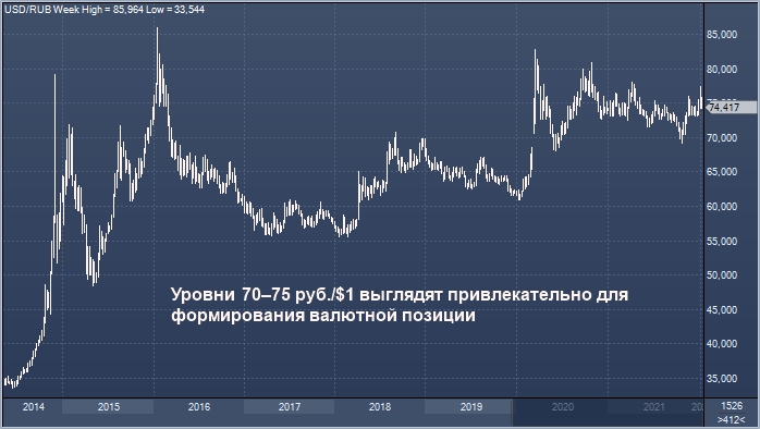 «В итоге уровни 70–75 руб./$1 по рублю выглядят привлекательно для формирования валютной позиции, а наш прогноз курса на уровне 80 руб./$1 на конец этого года, который был вне консенсуса рынка еще месяц назад, на фоне событий начала текущего года выглядит все более и более обоснованным», — резюмирует Орлова.
