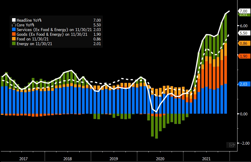 Экономисты, опрошенные Dow Jones, ожидали, что этот показатель увеличится на 7% в годовом исчислении и на 0,4% с ноября. Годовой прирост был самым быстрым с июня 1982 года. Без учета цен на продукты питания и энергоносители так называемый базовый индекс потребительских цен вырос на 5,5% в годовом исчислении и на 0,6% по сравнению с предыдущим месяцем. Это по сравнению с оценками 5,4% и 0,5%. Для базовой инфляции это был самый быстрый годовой рост с февраля 1991 года.