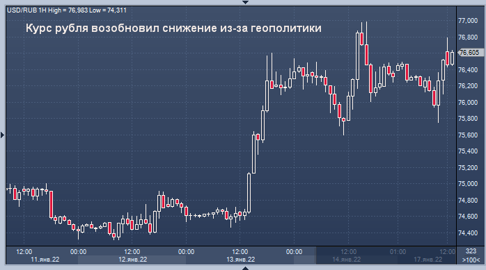 “Укрепление рубля в начале сессии было обусловлено локальной активностью экспортеров - небольшими продажами валюты на неликвидном рынке, после чего рубль продолжил падение, поддерживаемое порцией комментариев Пескова и анонсом военных учений России и Беларуси в феврале”, - говорит директор FX-трейдинга Ренессанс Капитала в Москве Дмитрий Гаврилец. “Покупки ЦБ вне налогового периода кратно превосходят чистые продажи валюты от корпоратов, особенно в выходной на рынке США”.