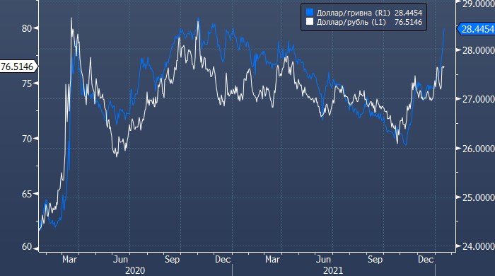 Российская валюта остается под давлением, снять которое не способен даже рост нефти Brent до рекордно высоких уровней с 2014 года. Курс рубля к доллару остается в области минимальных значений с апреля 2020 года в области 76,50, тогда как украинская гривна опустилась в паре с долларом до минимального значения с января 2021 года в области 28,50.