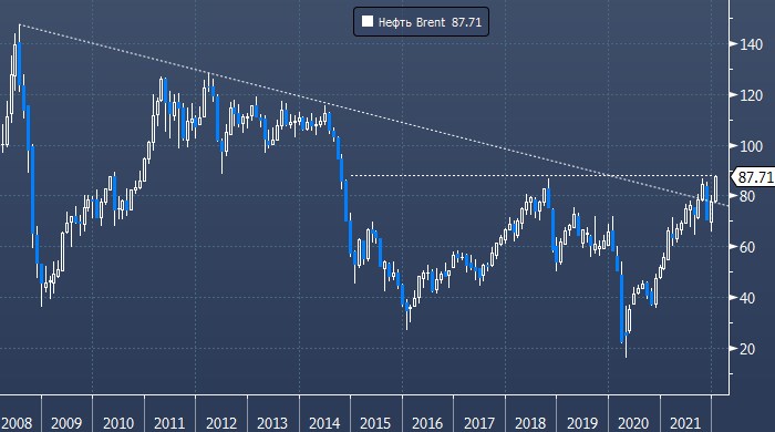 В этом месяце рынок физической нефти отлично себя чувствует, т. к. трейдеры уже забыли про омикрон и беспокоятся из-за перебоев в поставках из Ливии и Казахстана. Политика нулевой терпимости, которую власти Китая применяют в отношении пандемии, несколько затуманивает перспективы спроса на энергоносители в Поднебесной, однако несмотря на это маржинальность переработки нефти в дизель, который является главным азиатским экспортным топливом, достигла рекордного значения с ноября 2019 года на уровне около $17 за баррель.