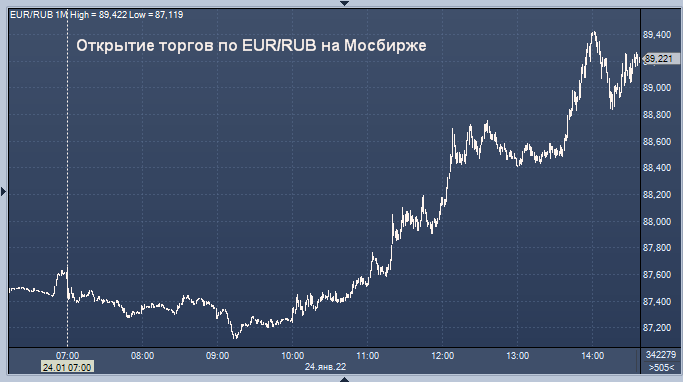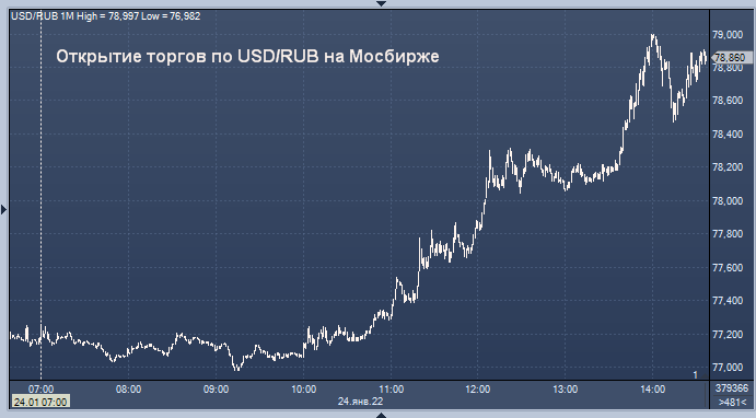 Таким образом, по официальному курсу ЦБ доллар вырос к рублю на 67 копеек, а евро вырос к рублю на 69 копеек по сравнению с официальным курсом субботы. Объем торгов на Московской бирже к 12:52 мск понедельника составил 1 241,1479 млрд рублей или 16 183,8964 млн долларов. Рубль сегодня падает на фоне дальнейшей эскалации отношений России и Запада из-за Украины и политики НАТО.