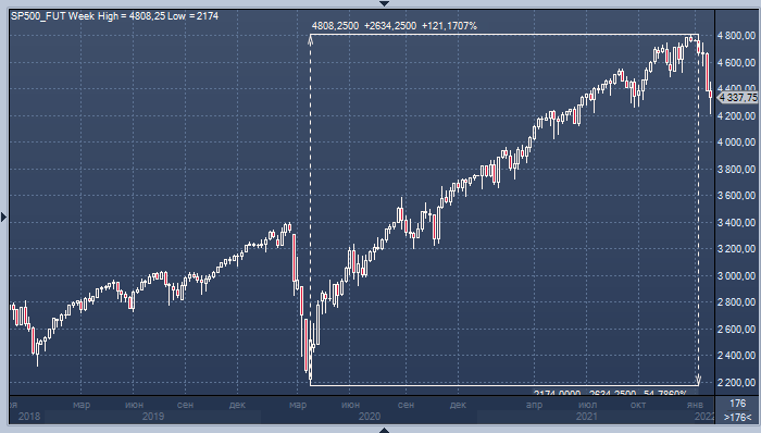 За время пандемии рынок акций США, представленный индексом S&P 500, вырос с минимума марта 2020 года до максимума января 2022 года примерно на 120%. Непоследнюю роль в этом сыграли деньги американских домохозяйств и некоммерческих организаций, которые активно инвестировали и накупили акций на беспрецедентные $30 трлн с лишним.