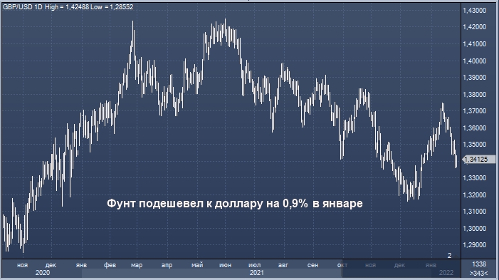 Фунт стерлингов был лидером роста в Большой десятке на торгах в пятницу, 28 января. Все валюты подешевели к доллару с начала года. Стабильнее остальных держится к доллару японская иена, так как она также относится к валютам тихой гавани. Фунт подешевел к доллару на 0,9% в январе, и это лучший после иены результат среди всех основных валют.
