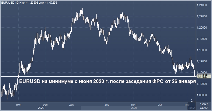 На пресс-конференции 26 января председатель ФРС Джером Пауэлл сигнализировал, что финансовые чиновники готовы поднять ставки в марте и оставил дверь открытой для повышения ставок на каждом заседании, если это необходимо для сдерживания самой быстрой инфляции за 40 лет. Опубликованная в пятницу статистика показала, что Индекс стоимости занятости вырос на 4% г/г, больше всего за два десятилетия.