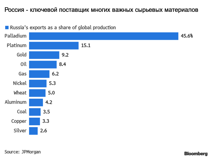 «Рынки становятся все более нервными в последние несколько недель», — пишут аналитики JPMorgan в отчете. «Учитывая значительный риск, который конфликт может представлять для поставок сырьевых товаров, дальнейшая эскалация и/или потенциальные перебои в экспорте, вероятно, приведут к дальнейшему росту цен на энергоносители, металлы и продовольствие».