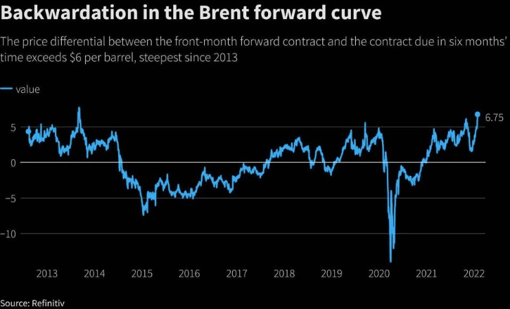 Риск геополитических перебоев с поставками нефти в период и без того ограниченных запасов из-за сильного постпандемического восстановления привел к резкому росту надбавки к баррелям ближайшей поставки, предполагая, что текущее ралли цен продолжится.