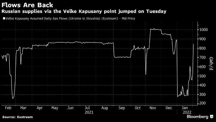 Европейские цены на природный газ упали после того, как российские поставки по ключевому маршруту, пересекающему Украину, восстановились. Согласно данным сетевого оператора Eustream, фьючерсы упали на 6,1%, так как поставки в Словакию через соединительный узел Велке-Капушаны на границе с Украиной вернулись к нормальному уровню. Увеличение поставок из России оказывает давление на цены, поскольку умеренная погода сдерживает спрос, а несколько партий сжиженного природного газа прибывают к европейским берегам. Европейские газовые фьючерсы упали до 79,50 евро за мегаватт-час, а затем немного восстановились и демонстрировали падение на 3,8% до 81,50 евро к 8:13 утра в Амстердаме.