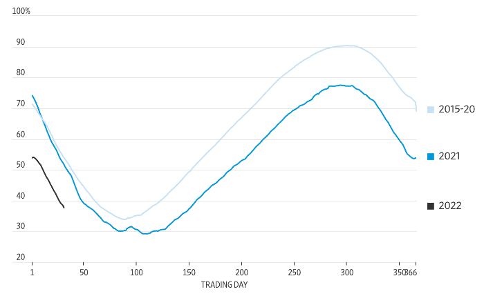 Однако фьючерсы на природный газ в Нидерландах, которые являются эталоном для северо-западной Европы, за последнюю неделю упали на 16%, и это снижение ускорилось после того, как в Словакию стало поступать больше российского газа через Украину. Сейчас фьючерсы на 59% ниже рекордного максимума в €180.27 ($203.86) за мегаватт-час, установленного 21 декабря, хотя по-прежнему в четыре раза выше, чем год назад.